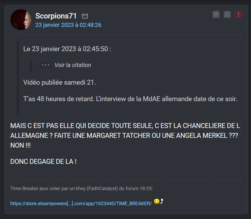 Le 22 mai 2023 à 15:22:44 bloblomv38 a écrit :