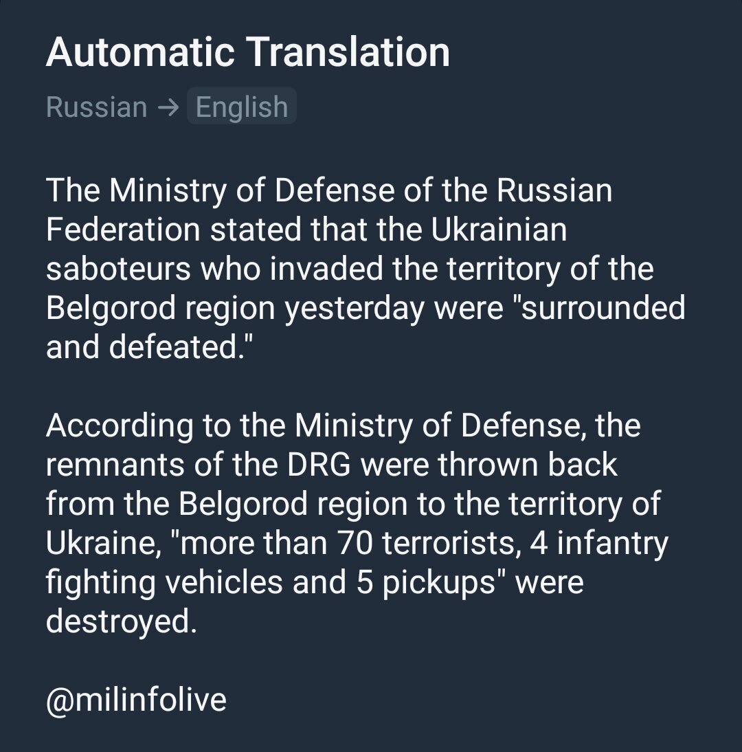 > > Et voilà, comme je le disais hier, la Russie se sert des évènements en cours a Belgorod pour justifier son intervention en Ukraine.