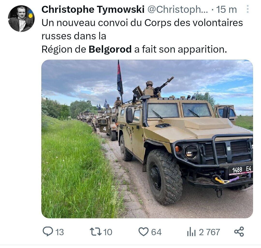 Peut être un nouveau convois d'insurgés russes en direction de Belgorod