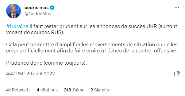 On se croirait en août quand les bots ne croyaient pas à la contre offensive ukrainienne de Septembre