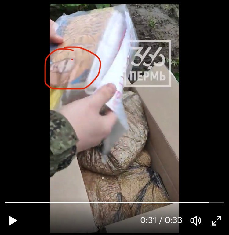 On voit très bien le dessin de poutine dans la vidéo de nexta vu que l'emballage est transparent..