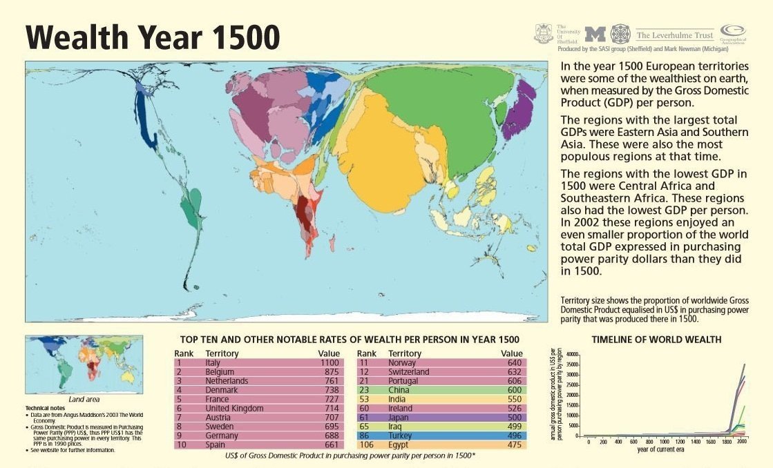 Source pro-occidental, l'occident était insignifiant entre l'empire romain jusqu'à l'exploration, les 200 ans dernières années sont une aberration historique. L'Inde et la Chine ont connu la proto-industrialisation pendant le moyen-âge https://en.wikipedia.org/wiki/Proto-industrialization