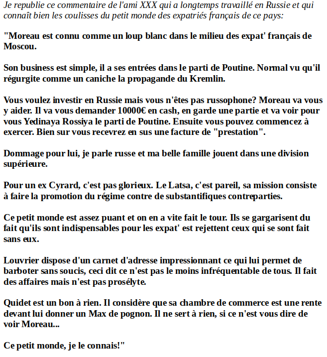 Le clown Xavier Moreau est payé combien par mois par le régime de Poutine à votre avis ?Il se fait du blé via la corruption au sein du petit cercle d'expats à Moscou