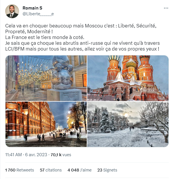 Et pour finir, le tweet lui-même compare une ville en russie à la France entière. On est d'accord la dessus, les pro-russes perdent souvent l'occasion pour briller.