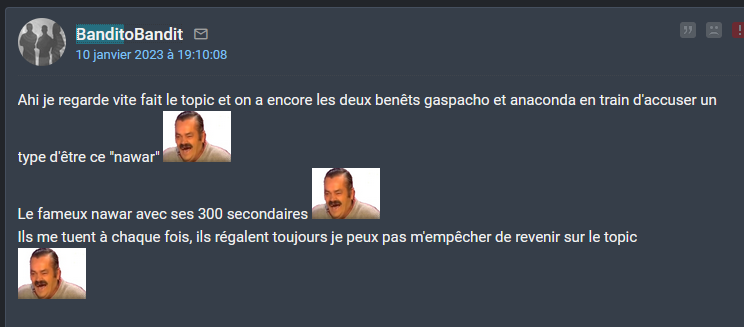Au passage petit bonus: https://www.jeuxvideo.com/forums/message/1215120361 Et deviné qui pop apres ? https://www.jeuxvideo.com/forums/message/1215121297