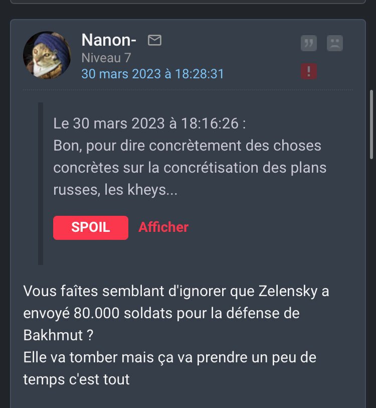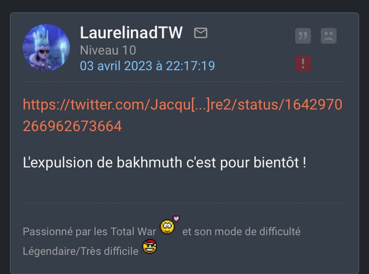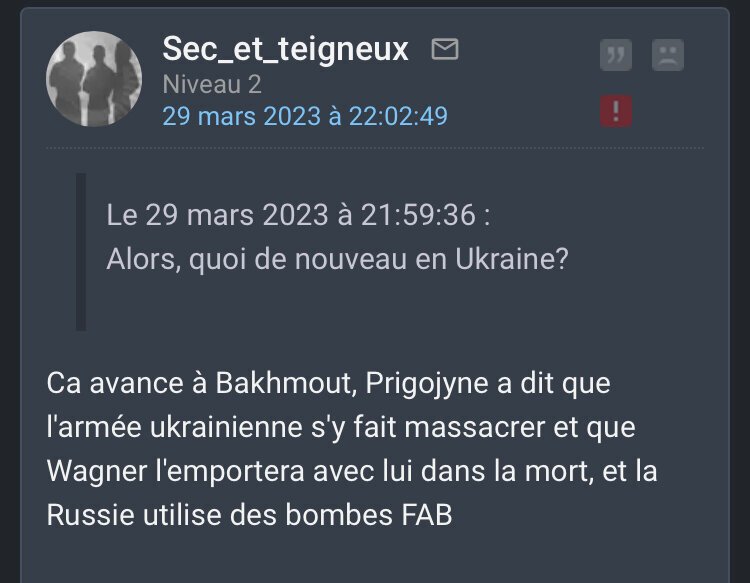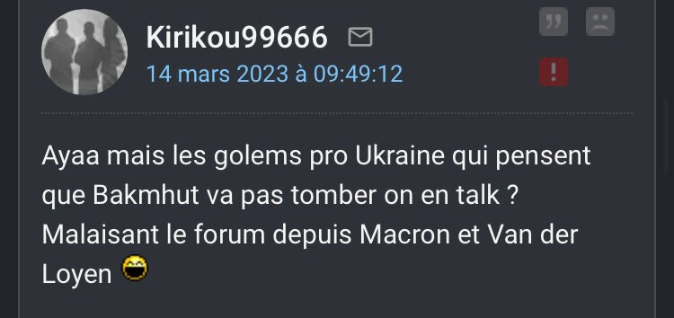 Concernant la contre-offensive ukrainienne ne vous faites pas d'illusions hein, les Russes sont en position de défense cette fois. Les Ukrainiens vont subir de lourdes pertes![]()