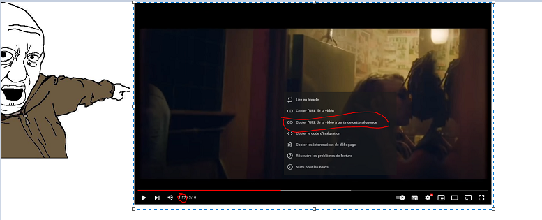 Je viens prendre de l'air ici, ça fait 3 fois que le guerrier du gange essaye de mettre une vidéo youtube avec un timer sur son mp a la gloire indienne