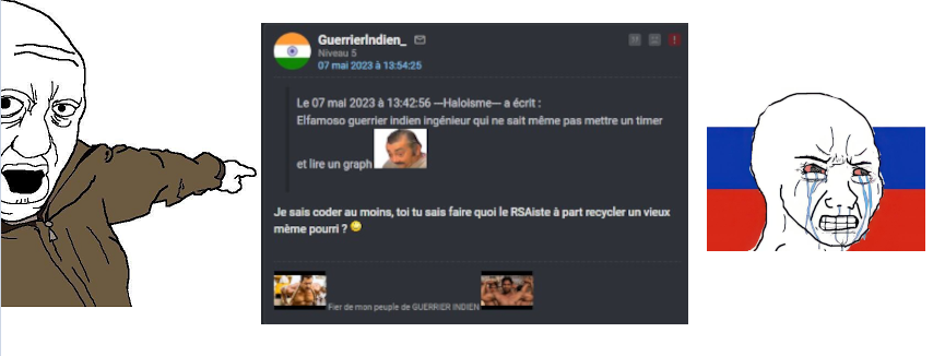 Je sais coder au moins, toi tu sais faire quoi le RSAiste à part recycler un vieux mème pourri ?