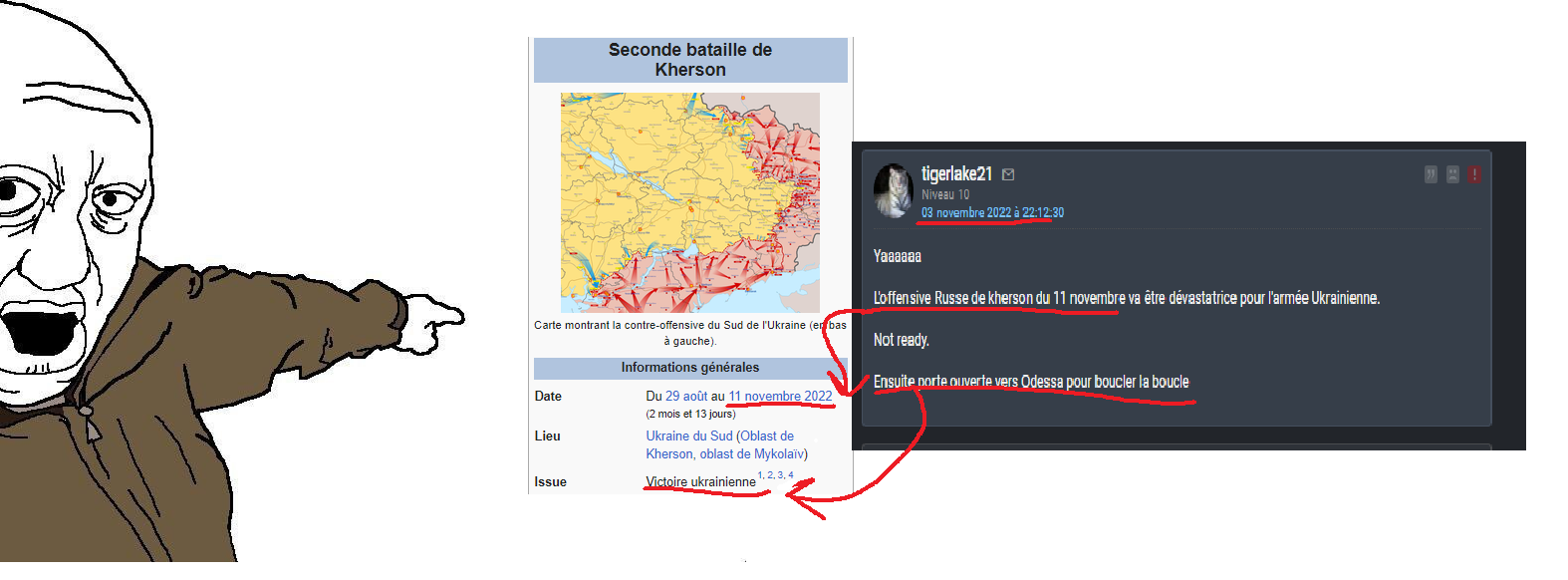 L’Ukraine a reprit tout l’oblast de kharkiv et la ville de Kherson. La Russie avance depuis 6 mois dans une petite ville du donbas. L’Ukraine va attaquer bientôt.