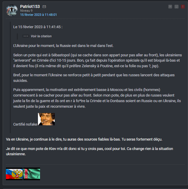 Comme super hero qui nous sort que Lviv est Hongrois ou le grand père 40x décoré de Charpente, le pire c'est que c'est 0 niveau crédibilité mais ils continuent