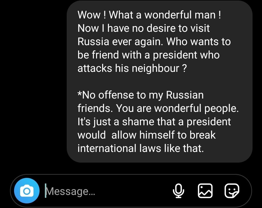 Une amie russe de longue date a fait un post sur Instagram hier pour rager de la déclaration du candidat aux élections Turques.