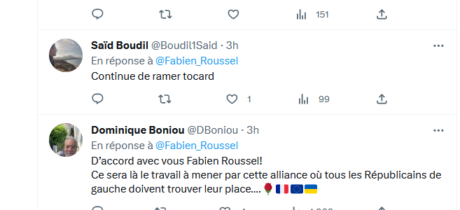 La j'ai pris le premier commentaire du premier tweet : "![]()