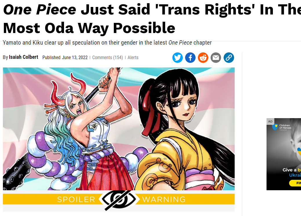 Le 22 avril 2023 à 12:00:18 :Le 22 avril 2023 à 11:58:48 :Yamato est trans Erreur de traduction en anglais. Il a toujours été dit que c'était une femme. Voici à quoi ressemblent les trans dans One Piece