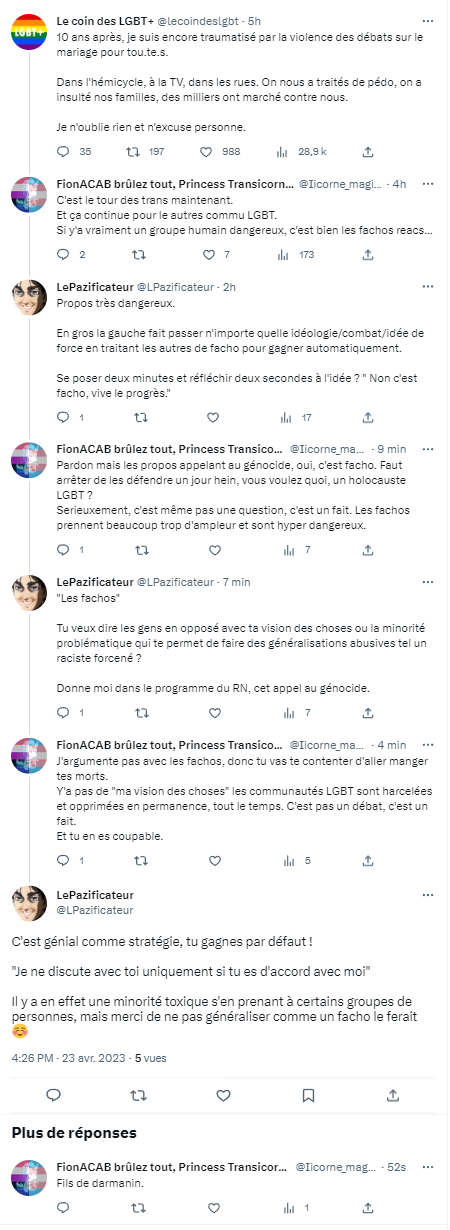 2 type sur twitter =/= la gauche + le discours "gneugneu on peu plu r1en dir san se fer trété 2 facho" c'est aussi un discours à la con