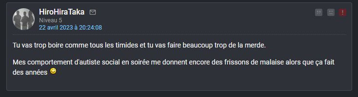 « Bon, je vais devoir demander au fofo quelques conseils. Je suis jamais sorti en soirée, ils pourront m’aider.