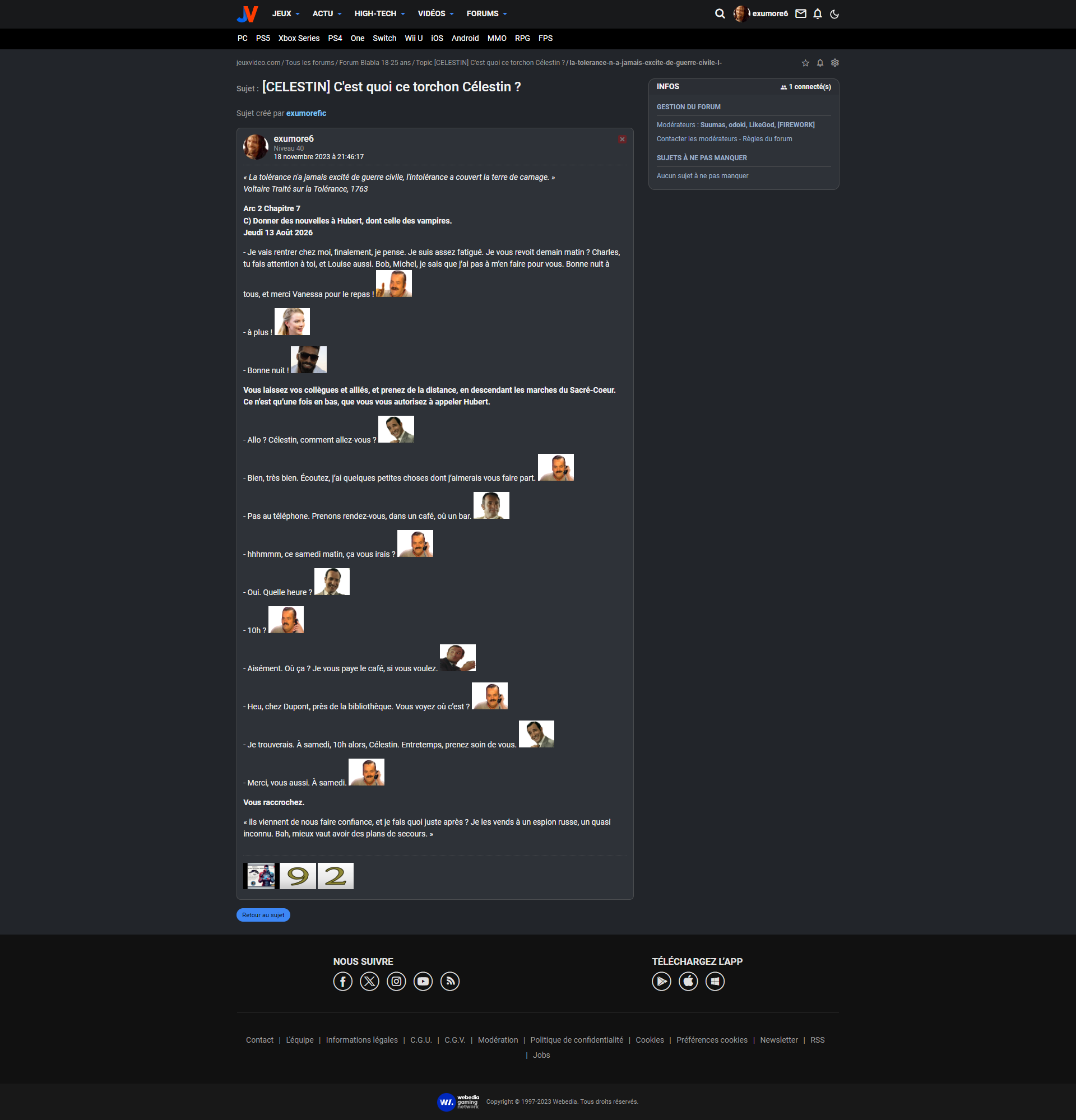 Par contre prévenir Hubert me semble pas dénudé d'intérêt, il a certainement de l'expérience dans ce genre de situation même si de mémoire il doit rester encore pas mal chamboulé depuis l'épisode de son enlèvement.