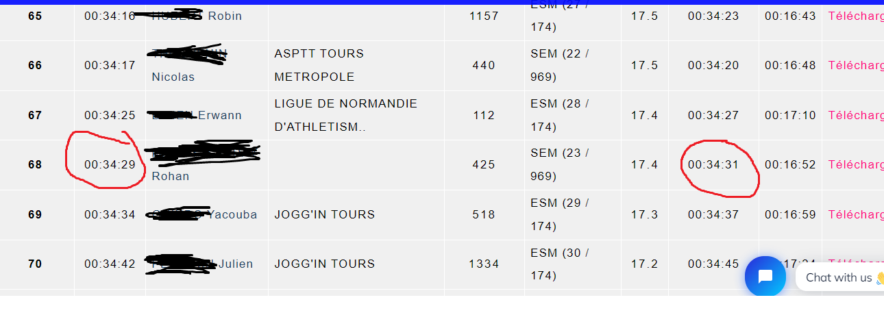 Je mets pas ma montre sur les courses je prends les résultats de course officiels