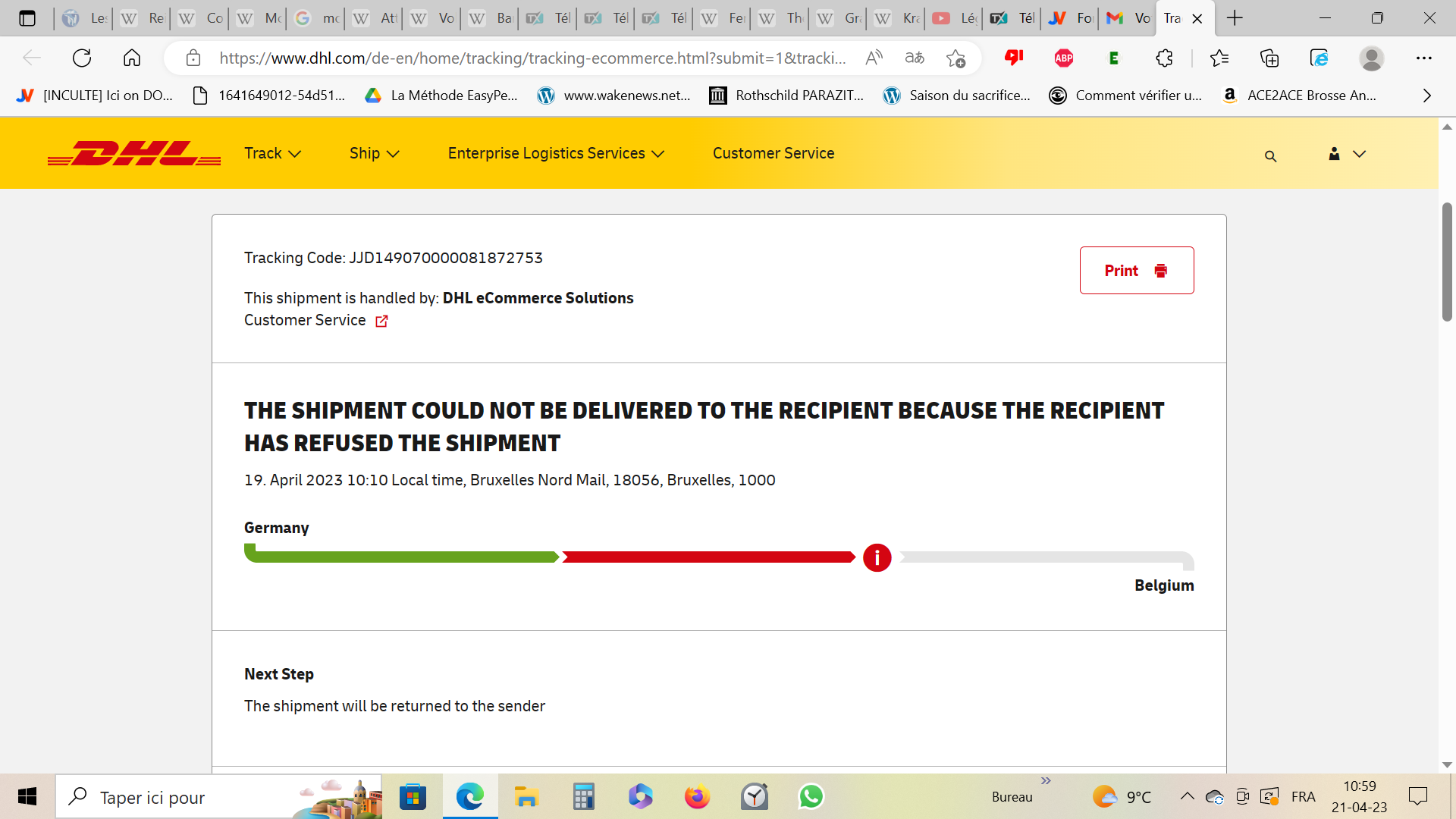 en clair mon colis est arrivé dans la fourgonette, soi-disant qu'à 10:10 le livreur est venu mais que le destinataire, c'est-à-dire moi, n'a pas "voulu" récupérer la commande (c'est écrit de cette façon) bref et qu'apparemment soi-disant que le colis va être remis à l'envoyeur