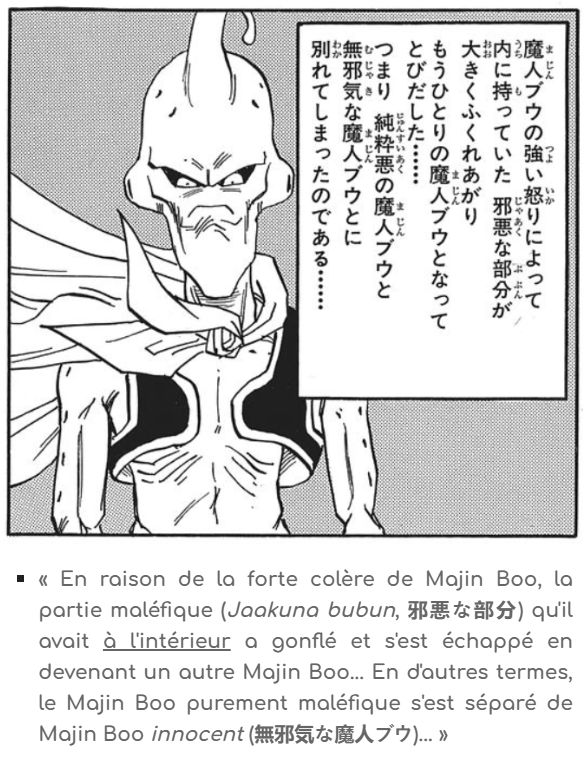 L'appellation de Majin Buu INNOCENT par L'AUTEUR se fait au moment de la séparation, pas avant le génie, coïncidence ?..