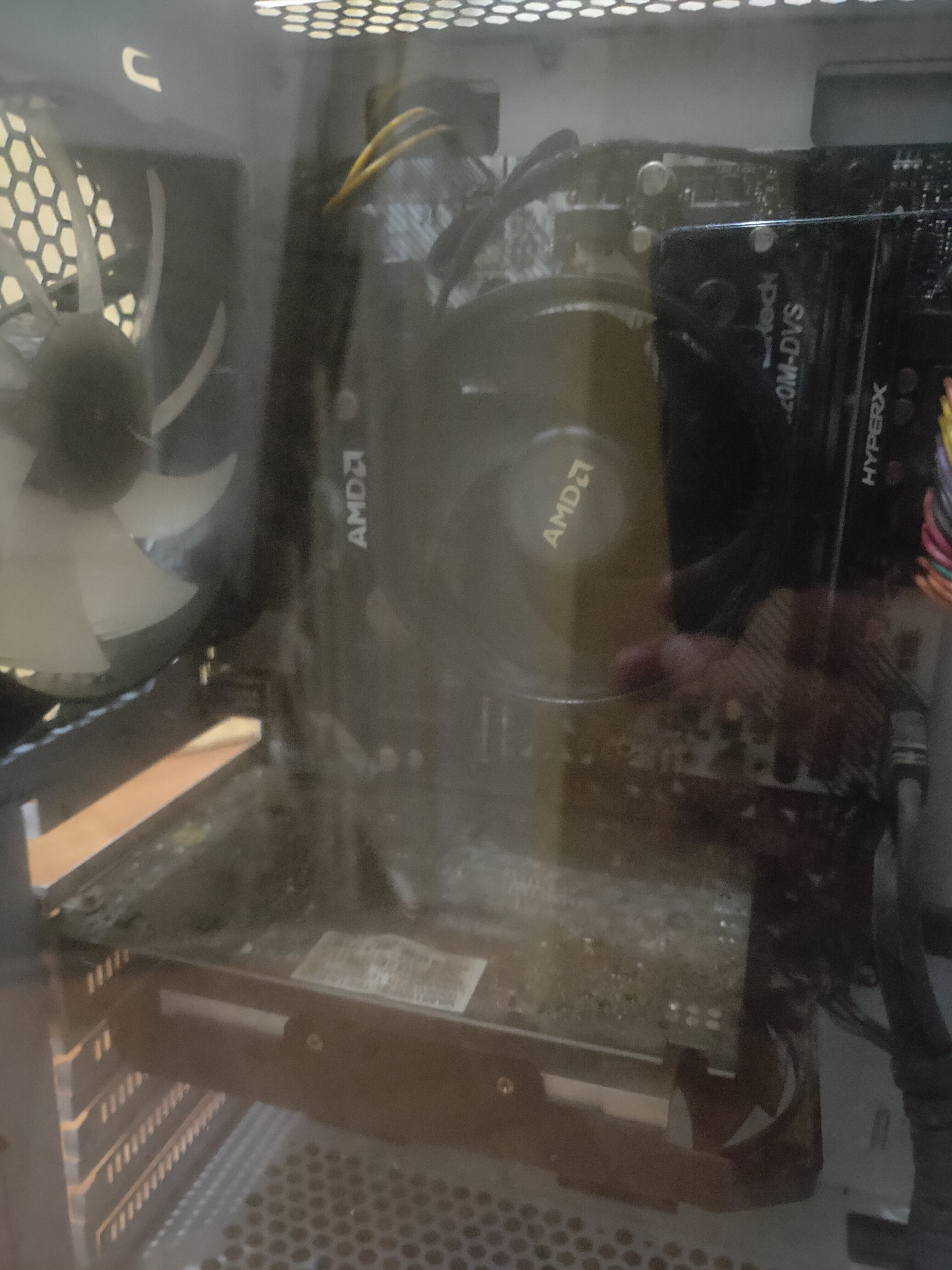 J'ai dépoussiéré le ventilateur central, celui fixé sur la carcasse arrière du pc. J'ai retiré et dépoussiéré le venti du cpu, il y avait de la pâte thermique au centre que je n'ai pas changé, j'ai remis le venti cpu à sa place.
