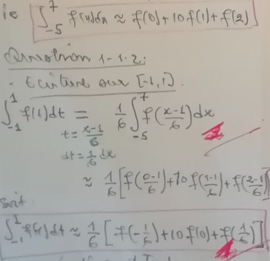 Le 14 mai 2023 à 17:59:26 :L'exo te donne une intégrale entre -5 et 7 et te demande de la calculer entre -1 et 1 ?