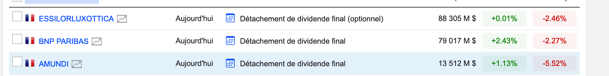 Cf : BNP, ESSILOR, AMUNDI aujourd'hui.