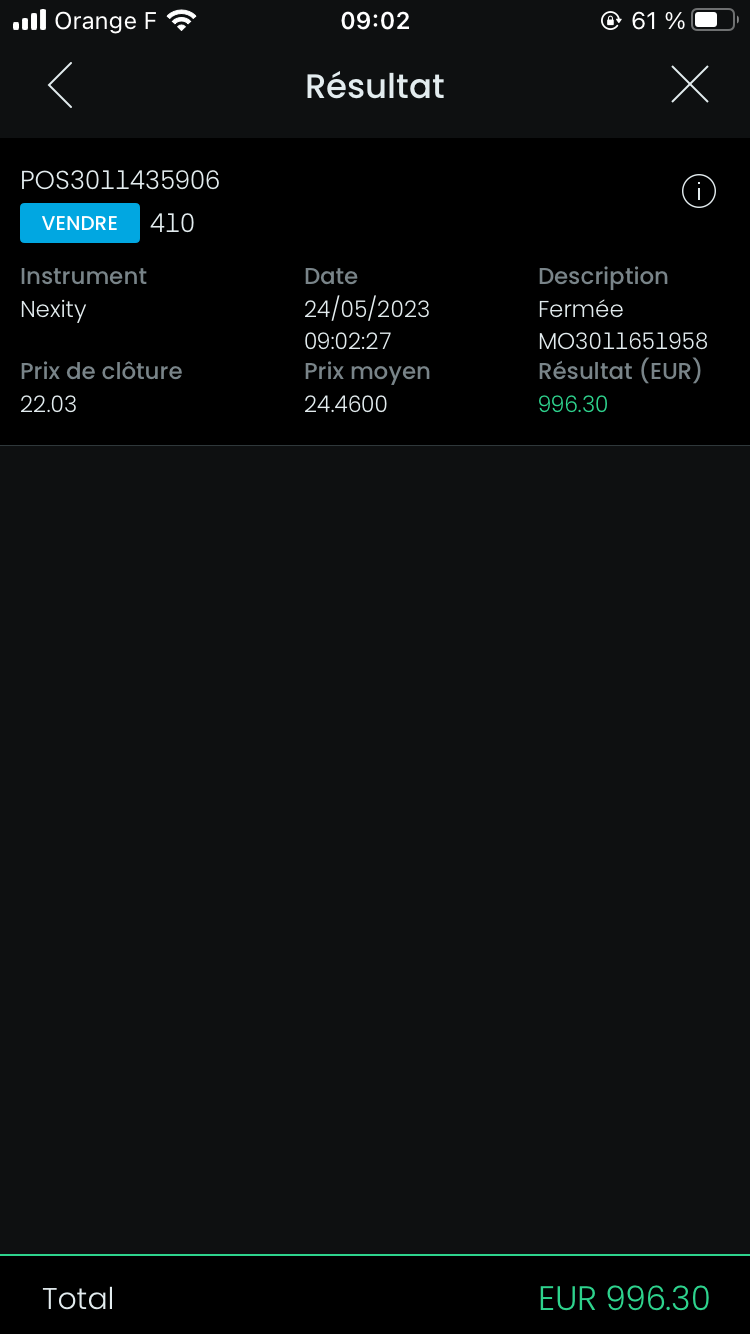 Ce soir à 17h je réitère sur Nexity, ils détachent un dividende de 10% demain donc j'ose même pas imaginer la baisse