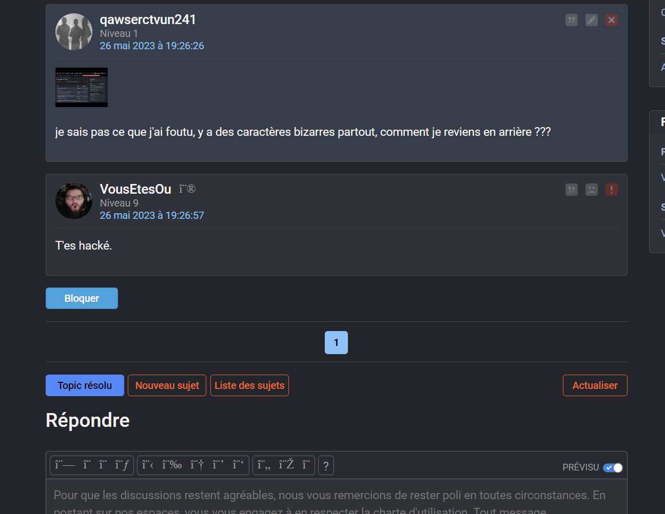 je sais pas ce que j'ai foutu, y a des caractères bizarres partout, comment je reviens en arrière ???