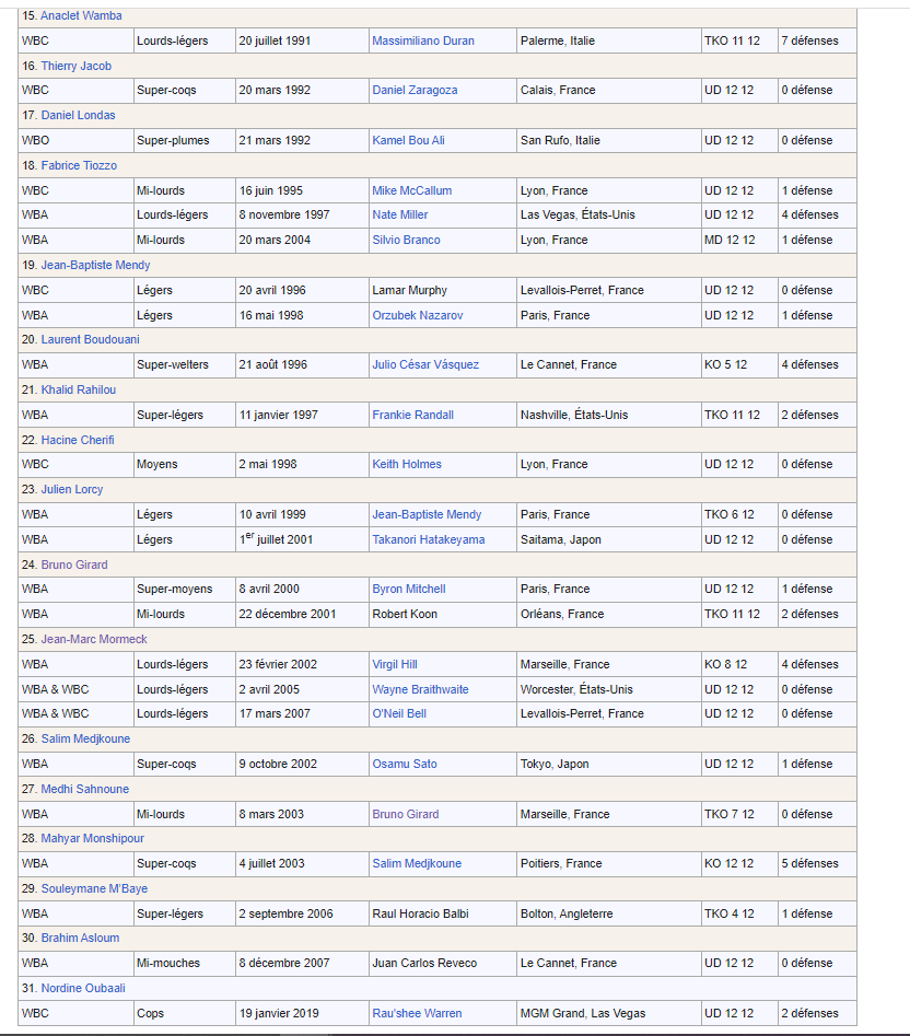 Et en général ça s'excuse si tu te chauffe à leur coup de pressionLa liste des français qui ont été champions du monde de boxe anglaise