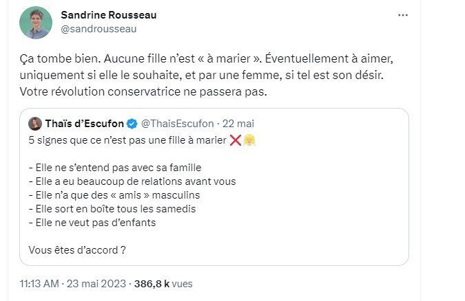 La rage de la trentenaire walled qui voit son fond de commerce être mis en danger par une plus jeune.Sur le fond du discours de Thaïs, c'est osef/1000.
