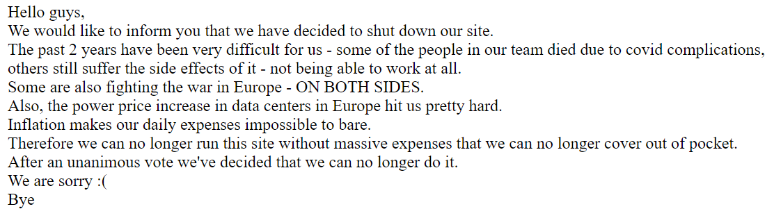 Le 31 mai 2023 à 13:24:11 : ça marchait hier ils foutent quoi avec leur argent aussi, si tu fais un site gratuit faut pas pleurer que c'est trop cher, c'est quoi ces lourdingues. Faut trouver une alternative maintenant