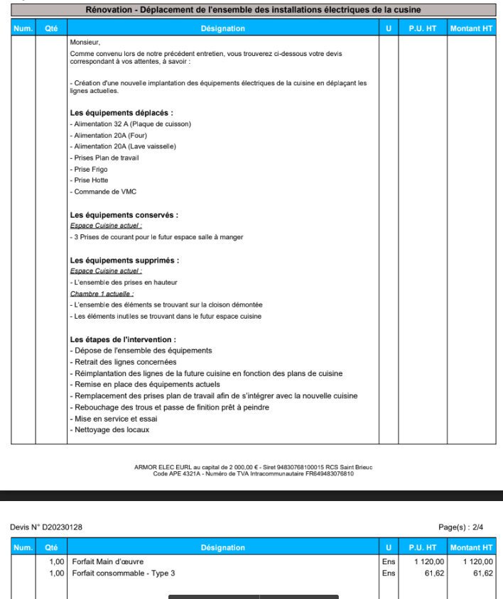 Tu devrais tenter un devis chez d'autres, histoire de comparer les prix, mais rappelle-toi que c'est pour ton installation electrique, mieux vaut trouver un très bon electricien et y mettre le prix plutôt que de chercher à faire des économies et risquer de niquer ta maison