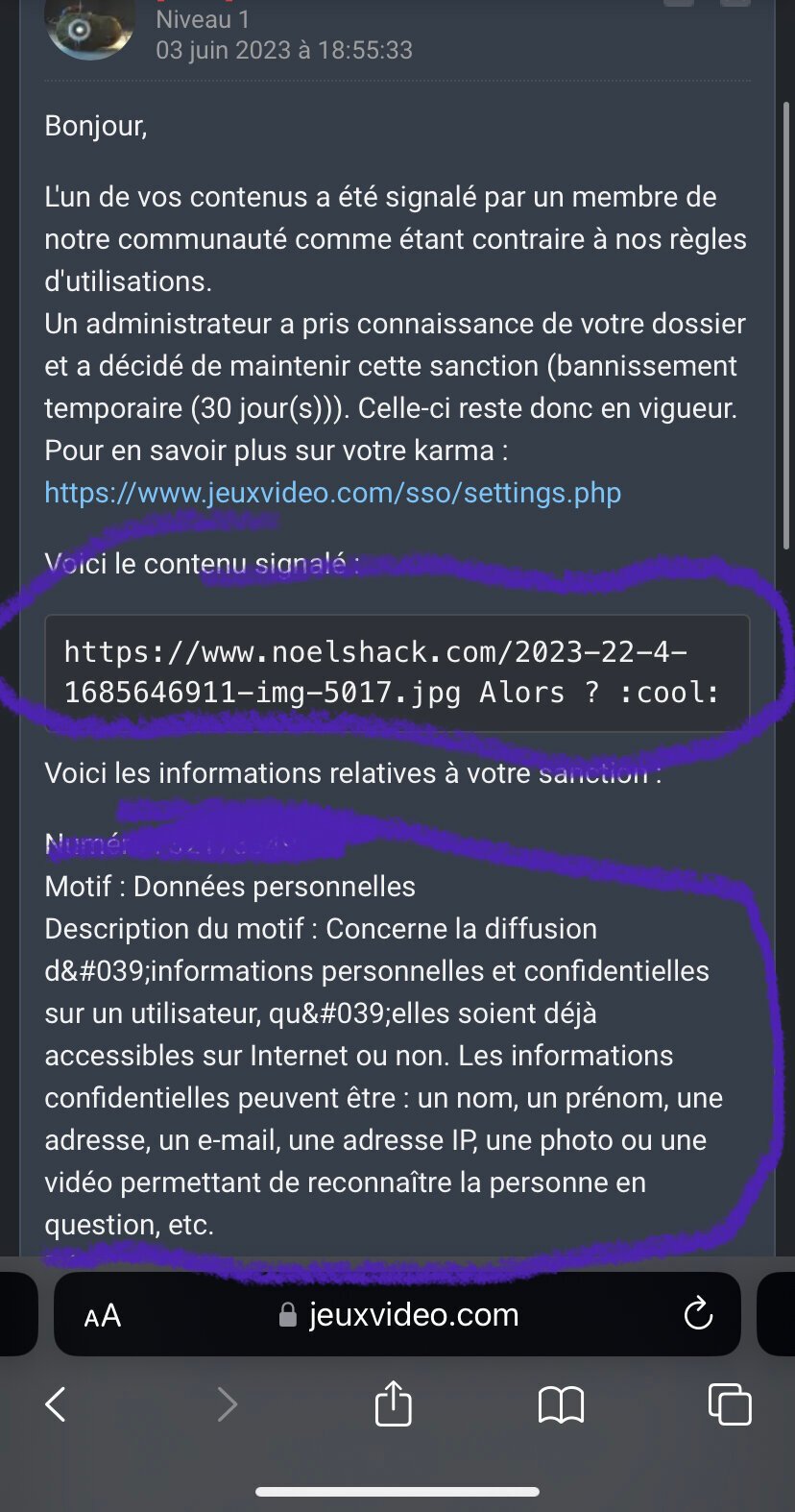 J’avais posté une photo de ma coupe de cheveux en sortant du coiffeur je me mange 30 jours de ban sur mon niveau 10