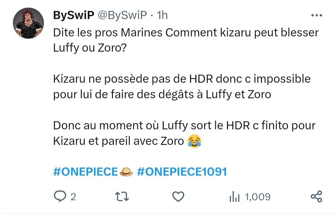 Les fans de Zoro sur les réseaux ça me fume, ils font passer Lucci pour un level Amiral maintenant.![]()