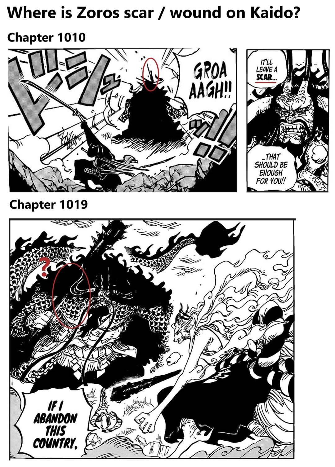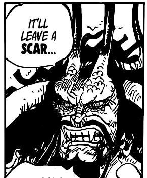 Kaido au chap 1010: "ça laissera une cicatrice"Vagabondage: "pas de dégât, source: tkt."