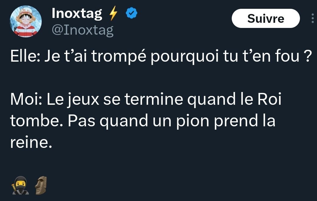 T'as compris la vanne ou pas ? Genre le roi c'est le mec t'as capté ? 🤣
