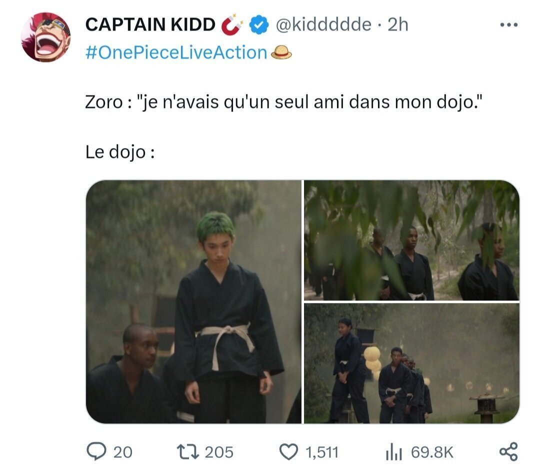 Le jeu d acteur de luffy est horrible.Putain mais autant avant je me disais " ok les gens aiment ok"