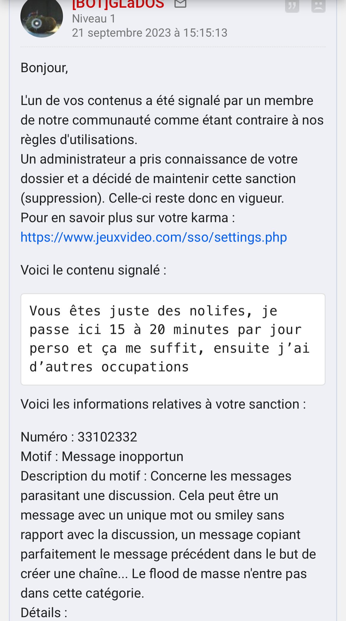 154 jours et 1200 messages alors que c’est sûrement un secondaire