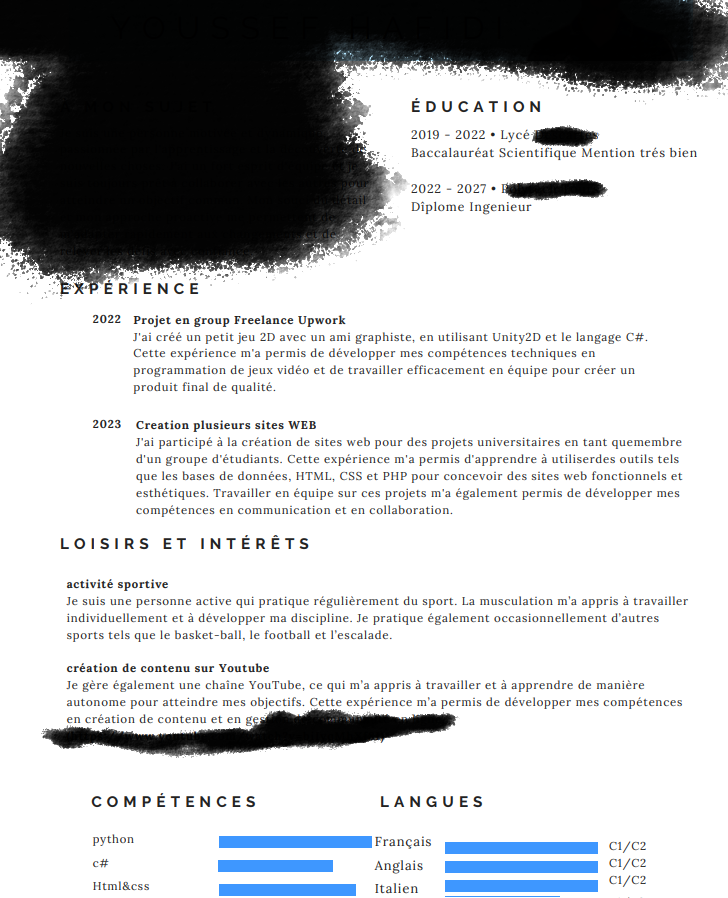 On le répète, mais les barres de progression, c'est non. Après ton CV est correct, si tu as du temps à perdre, tu peux travailler son aspect global à partir d'un template sur Canva