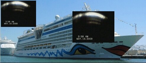 t'as déjà vu un bateau de croisière ? t'as pas des putains de spots pareils et jamais les lumières des cabines brillent autantjustement les lumières que l'on voit sur la vidéo correspondent bien, y compris les 5 points sur d'autres vidéos
