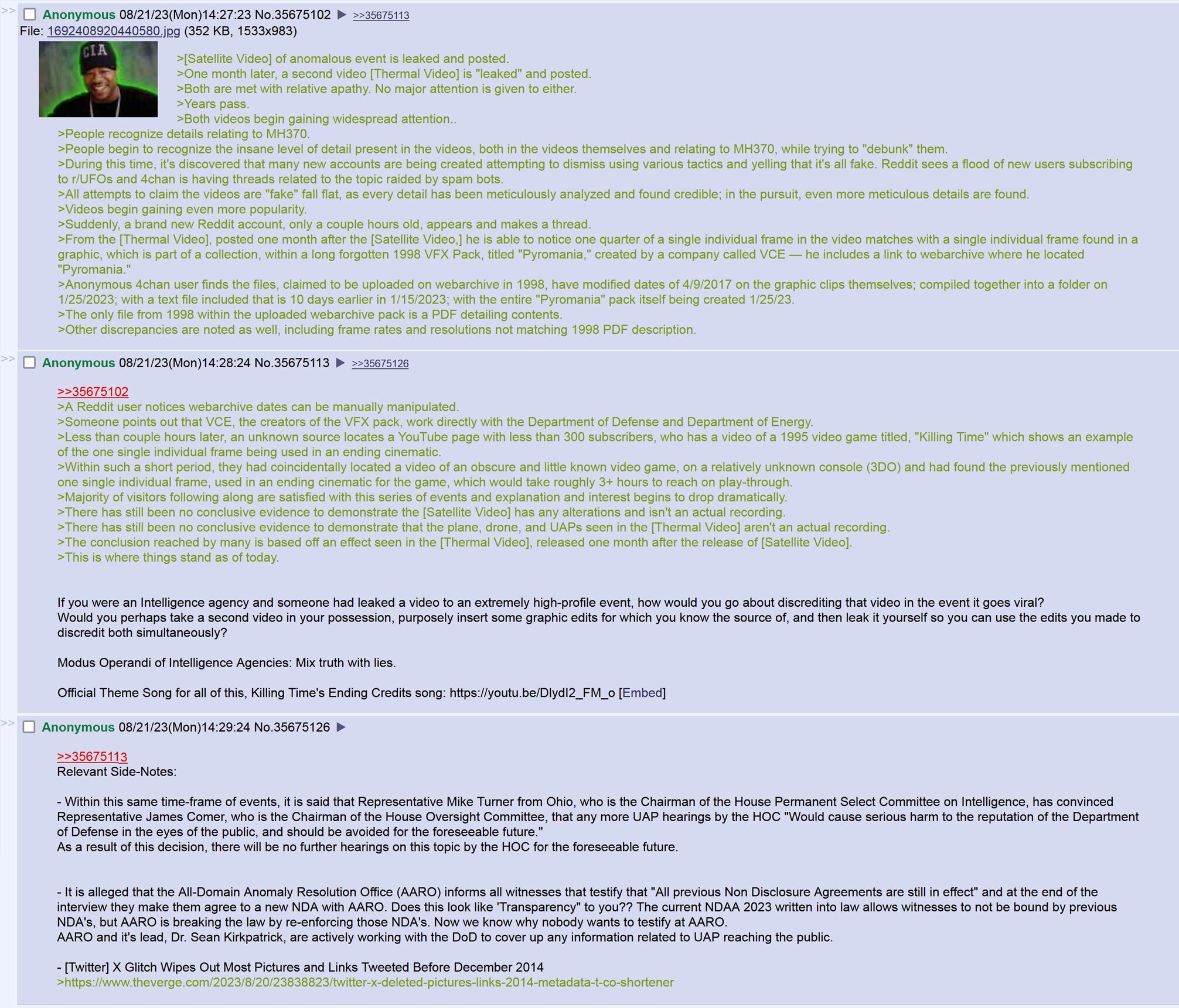 Le MH370 n'a jamais été débunk, c'est juste que c'est interdit d'en parler sur le subreddit UFO désormais (l'endroit où le débat est né) donc tout le monde a lâché l'affaire, il y a un thread sur le board /x/ de 4chan mais ça n'avance pas vraiment.et le même vfx qui est présent dans le dvd de vfx + dans un jeux vidéo ?