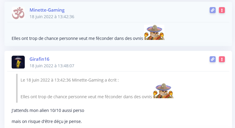 J'ai entendu ce témoignage, les puceaux du forum les E.T sont votre chance. PiloteDeVimana aka EmpereurSDF bientôt tu pourras être un homme.