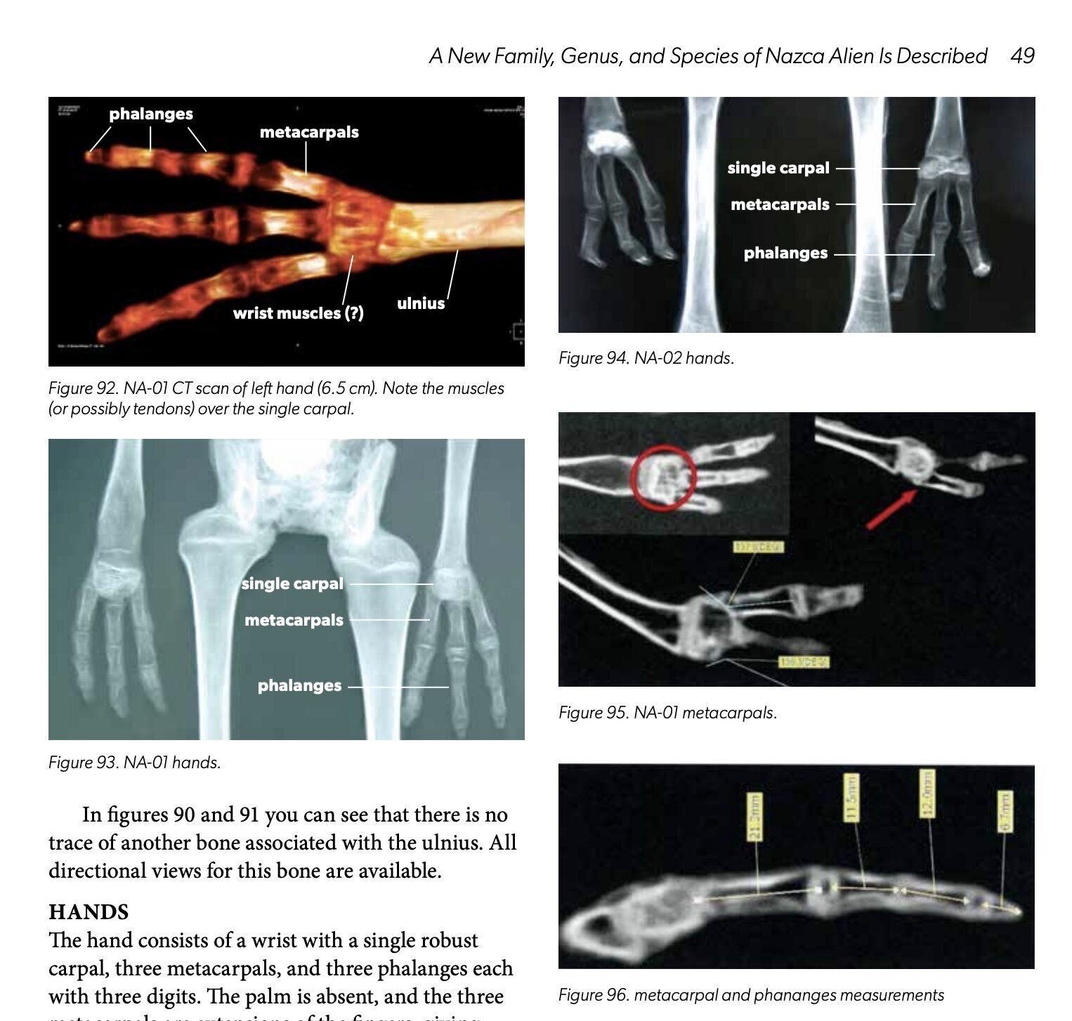 les os des doigts directement accrochés au bras, c'était un élément important du debunk. En fait, il y a bien des carpals.