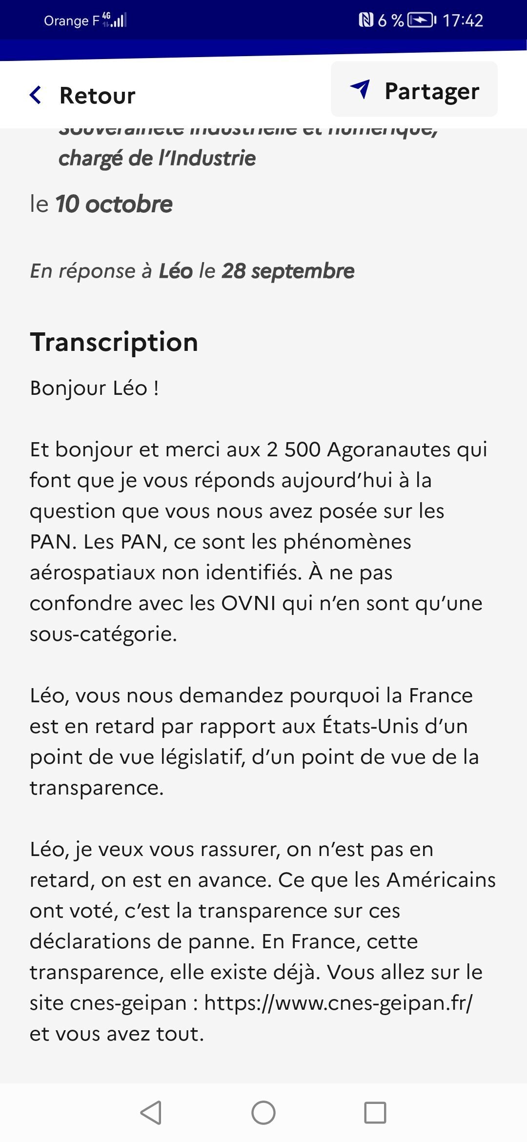Le Parisien vient de publier un article sur la réponse de Roland Lescure à la question sur les PANs. Le journaliste Gael Lombart défend la thèse que la réponse du gouvernement est confuse.Le Parisien a également contacté le bureau de Lombart par téléphone, qui a reconnu que la réponse comportait des erreurs (en admettant qu'ils se sont emmêlés les pinceaux dans la préparation de la réponse), notamment celle que les 3 % de PANs non-identifiés seraient classés secrets pour des raisons de défense nationale. Le bureau de Lombart a donc reconnu que ces 3 % sont bien à ce jour non-identifiés.