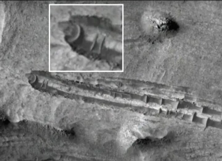 Mars n’en finit pas de livrer ses surprises et même des photos déjà anciennes peuvent donner lieu à de troublantes «découvertes». C’est ainsi qu’un certain Jean Ward, un Sud-Africain passionné de la planète rouge et surtout des anomalies plus ou moins étranges que l’on peut y trouver, fait le buzz avec une image prise par la sonde Mars Reconnaissance Orbiter en 2006, visible sur le site de l'Université de l'Arizona. . Passée inaperçue à l’époque, cette photo montre une longue trace sur le sol martien, dans l'un des nombreux canyons de la région de Valles Marineris, à proximité de l’équateur
