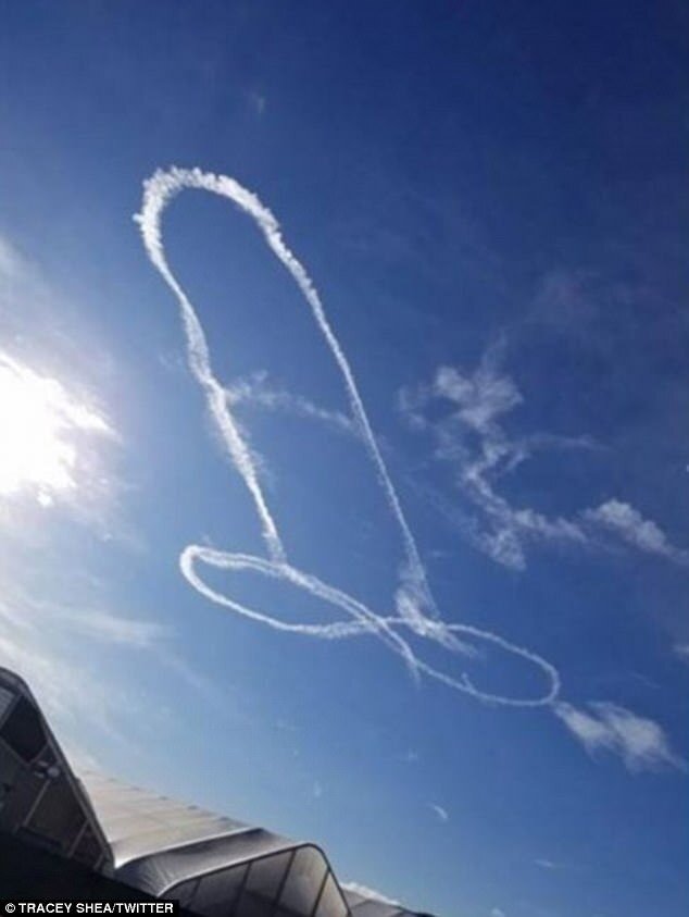 un pilote dessine une bite dans le ciel = des images d'un objet qui défie les lois de la physique + témoignage de tout un porte avion