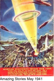 Première représentation du concept d'OVNI extraterrestre, Amazing Stories, août 1946 :
