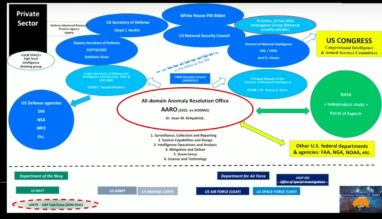 - "Legacy program" (programme héritté) = Toute organisation qui a tenté de récupérer des ovnis, de faire de la rétro-ingénierie ou a examiné des NHI morts ou vifs