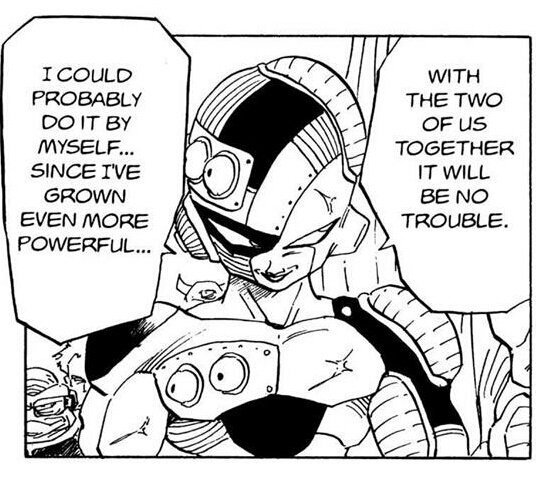 J'ai toujours vu Mécha Freezer à 150 000 000 d'unités soit au même niveau que Goku SSJ sur Namek. Il dit qu'il pense pouvoir s'en occuper mais qu'il compte sur son daron au cas où.