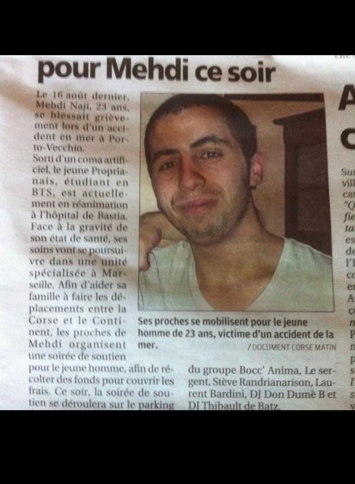 Ca va sembler bizarre mais est-ce que tu as eu cet accident avec un ami qui s'appelait renaud ?